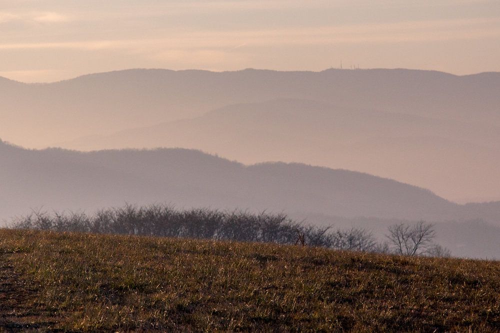 Un couple d'amoureux se promène dans les collines serbes au coucher du soleil.