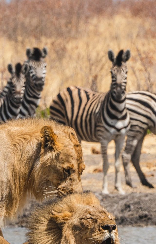 A propos de "Couple de lions à un point d'eau en Namibie, Afrique"
