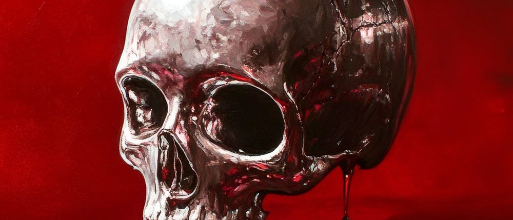 Un jeu fascinant d'ombre et de lumière se déploie sur la surface d'un rouge profond, où un crâne brillant émerge comme d'un rêve surréaliste. L'interaction contrastée entre la brillance et l'obscurité fait naître des pensées mystérieuses. Idéal pour les espaces créatifs ou un salon stylé, où il peut stimuler les conversations.