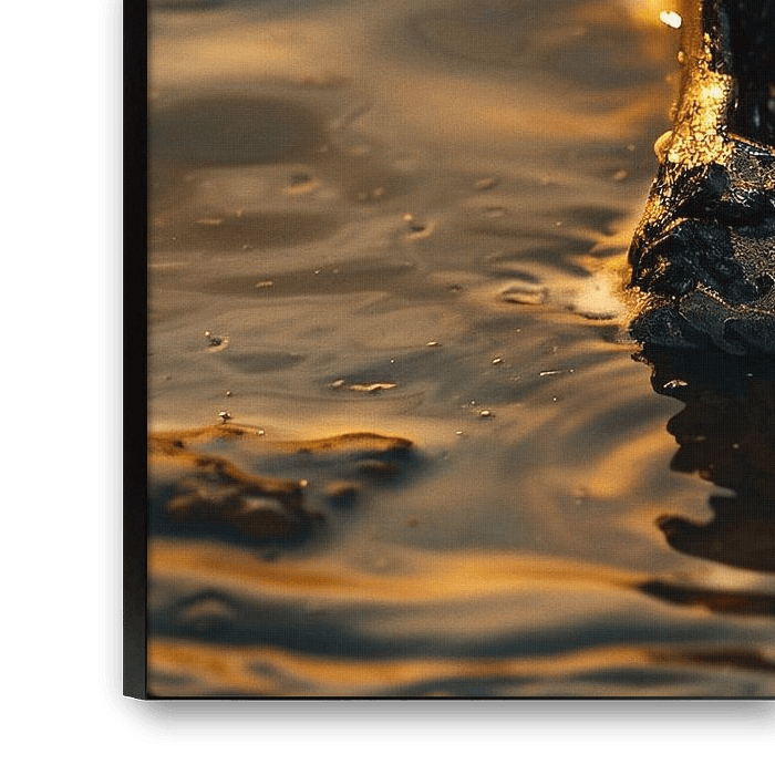 Cette œuvre d'art captivante capture un moment unique d'un crâne humain à moitié immergé dans l'eau, illuminé par la lumière dorée du coucher de soleil. Le crâne, riche en détails et en textures, semble venir d'un autre monde, tandis que l'eau qui l'entoure est calme et réfléchissante. Cette confluence de nature et de mystère fait de cette pièce un sujet intriguant de discussion et d'admiration, parfait pour un environnement moderne de vie ou de bureau qui recherche la profondeur et la contemplation dans son décor.
