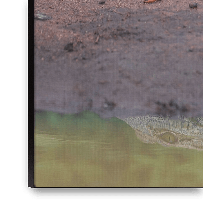 Dans une nature sauvage et feutrée, enveloppée par la mystique de son environnement, un crocodile repose en toute quiétude. Son corps semble ne faire qu'un avec l'eau calme, comme une statue préhistorique qui a résisté à l'épreuve du temps. Sa surface reflète la sérénité de sa présence, tandis que ses yeux restent vifs et attentifs. Un…