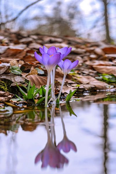 Crocus dans le reflet du miroir par Photoart-Naegele