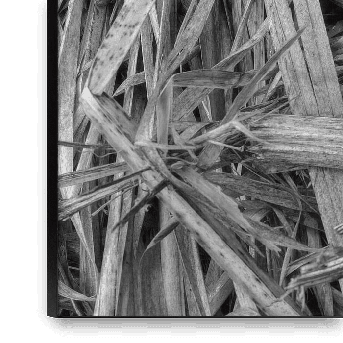 Détail de roseaux appelés "criss-cross". La nature elle-même crée des structures et des formes magnifiques, comme ce roseau coupé le long d'un fossé de polder.