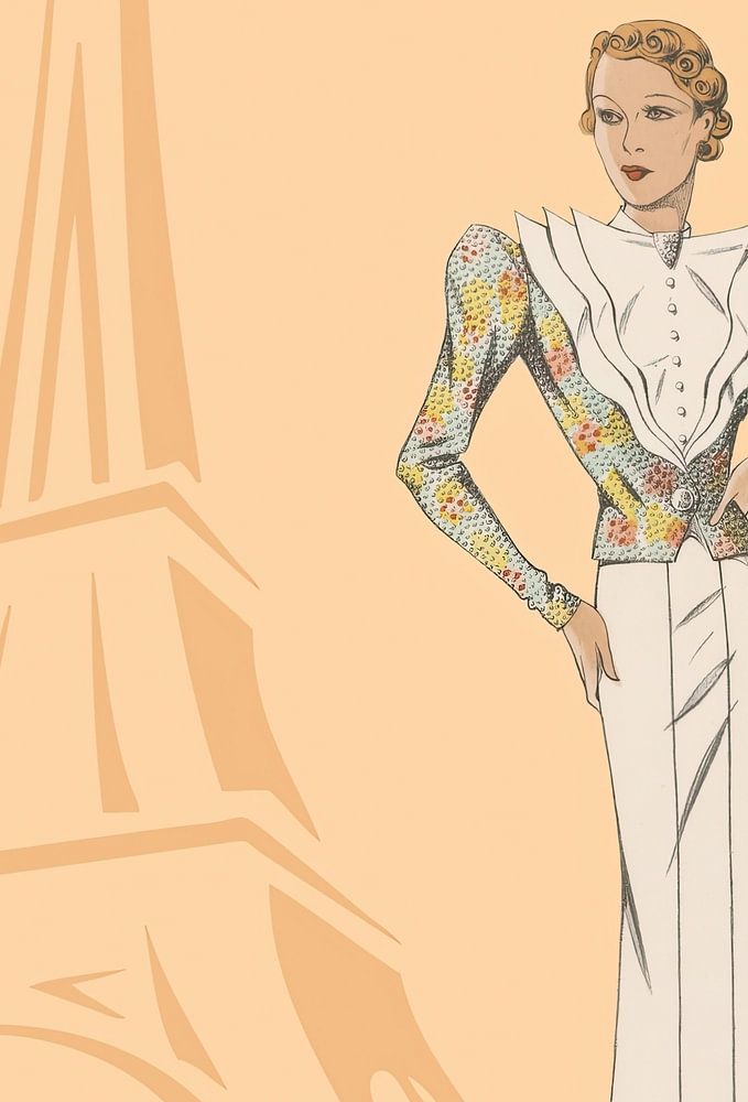 Esquisse de mode devant la Tour Eiffel à Paris