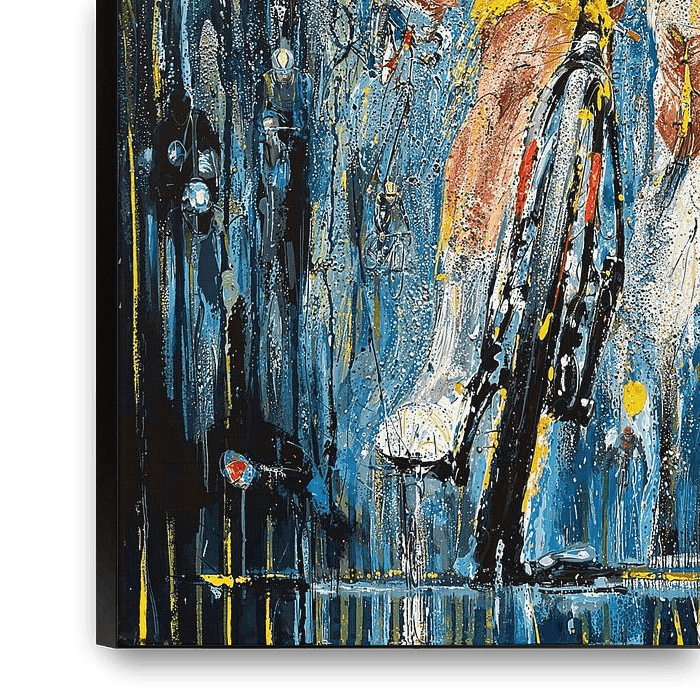 Peinture d'un cycliste démonstratif portant le maillot jaune. Taille originale 100 x 160 cm. Matière : acrylique sur lin. L'original est encore disponible.