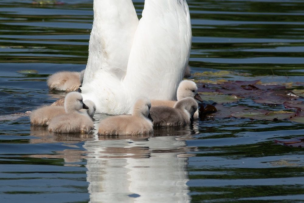 Dans le Maximapark de Leidsche Rijn, nous avons aussi de l'eau. Et là, je suis tombé sur un cygne avec ses petits. La mère cherchant de la nourriture et tous les petits serrés contre elle. J'ai trouvé cela si beau à voir.