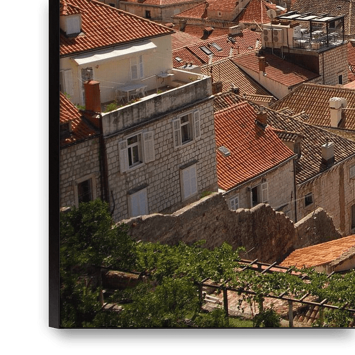 Photo de quelques toits rouges à Dubrovnik (Dalmatie), Croatie. La vue d'en haut permet d'admirer l'architecture de la vieille ville.