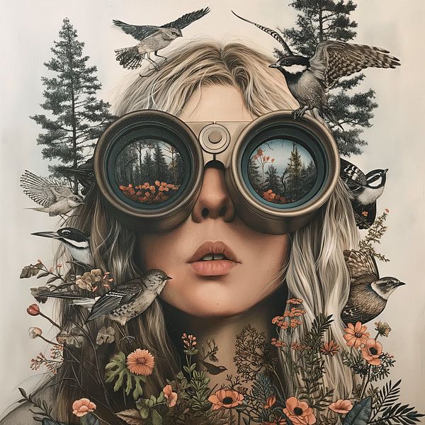Achetez cette œuvre d'art de paysage Dame ornithologue par Mel Digital Art sur toile, aluminium, ArtFrame ou photographie (encadrée), impression d'art en haute qualité et tout format.