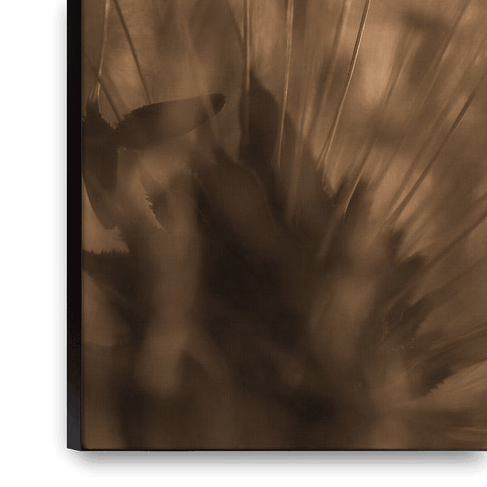La profondeur de champ est faible (seulement quelques mm d'un certain nombre de peluches et de graines), ce qui crée une atmosphère de rêve renforcée par les couleurs douces, or, crème, beige, marron et chaudes. Cela donne également un sentiment de profondeur à l'œuvre.