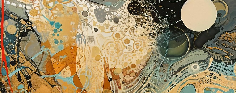 Détails : abstrait, moderne, or, rouge, bleu, terre, texture, cercles, lignes, panorama, Groovy Champagne