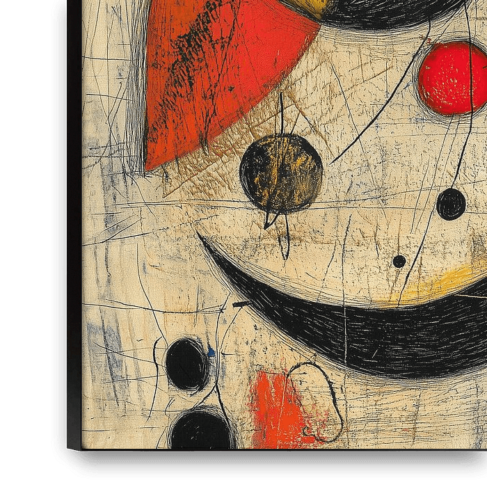 Dans ce quatrième et dernier volet de la série "Danse des corps célestes", les éléments s'unissent dans une composition vivante, presque musicale. Les formes contrastées en rouge, jaune, bleu et noir semblent tourner sur leur propre orbite, comme des corps célestes dans un univers rythmé.