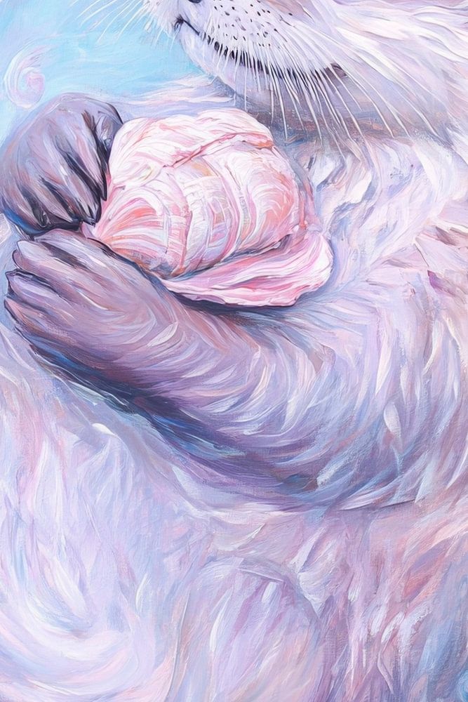 Dans un doux courant d'eau fraîche comme la rosée, une image enchanteresse de sécurité se déploie. Une loutre à fourrure, douce et ronde, étreint tendrement un petit être. Les vagues aux couleurs pastel l'entourent et créent une atmosphère harmonieuse qui incarne la quintessence du calme et de l'amour. Une scène touchante qui réchauffe le cœur.