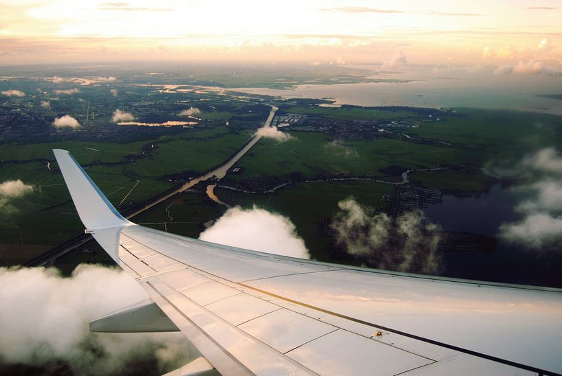 'From the plane' est une photo prise au coucher du soleil et juste avant l'atterrissage à l'aéroport de Schiphol. Cette photo montre l'aile gauche de l'avion de KLM.