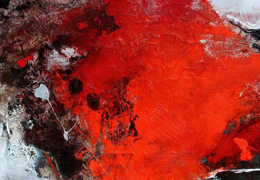 Image abstraite et colorée en rouge-noir-blanc, collage avec du papier de soie, une image pour le bureau, le salon ou la pratique, peinture moderne et contemporaine.