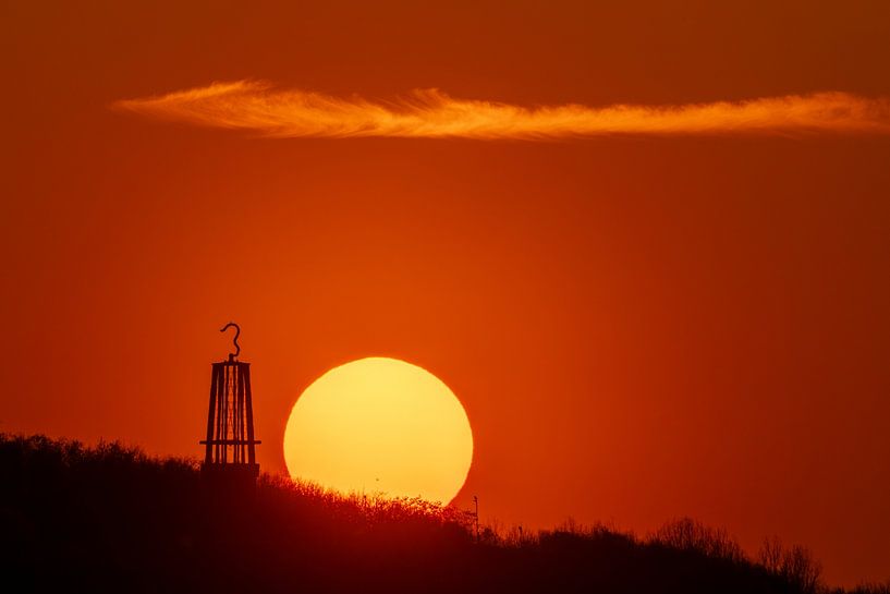 Coucher de soleil au Geleucht, terril de Rheinpreussen, Moers, Rhénanie-du-Nord-Westphalie, Allemagne