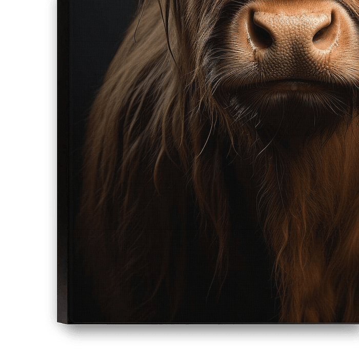 Entrez dans le monde mystérieux du Highlander écossais grâce à cette intrigante photo en gros plan. Sur un fond noir profond, la force et la beauté de cet animal majestueux prennent tout leur sens. Vous pouvez admirer chaque détail du pelage luxuriant et des cornes imposantes tout en vous perdant dans les yeux hypnotiques du Highlander. Ce tableau dégage une élégance intemporelle et une touche d'intrigue. C'est un chef-d'œuvre qui fera sensation dans n'importe quel intérieur. Apportez le charme rustique du Highlander écossais dans votre maison avec cette photo en gros plan à couper le souffle.