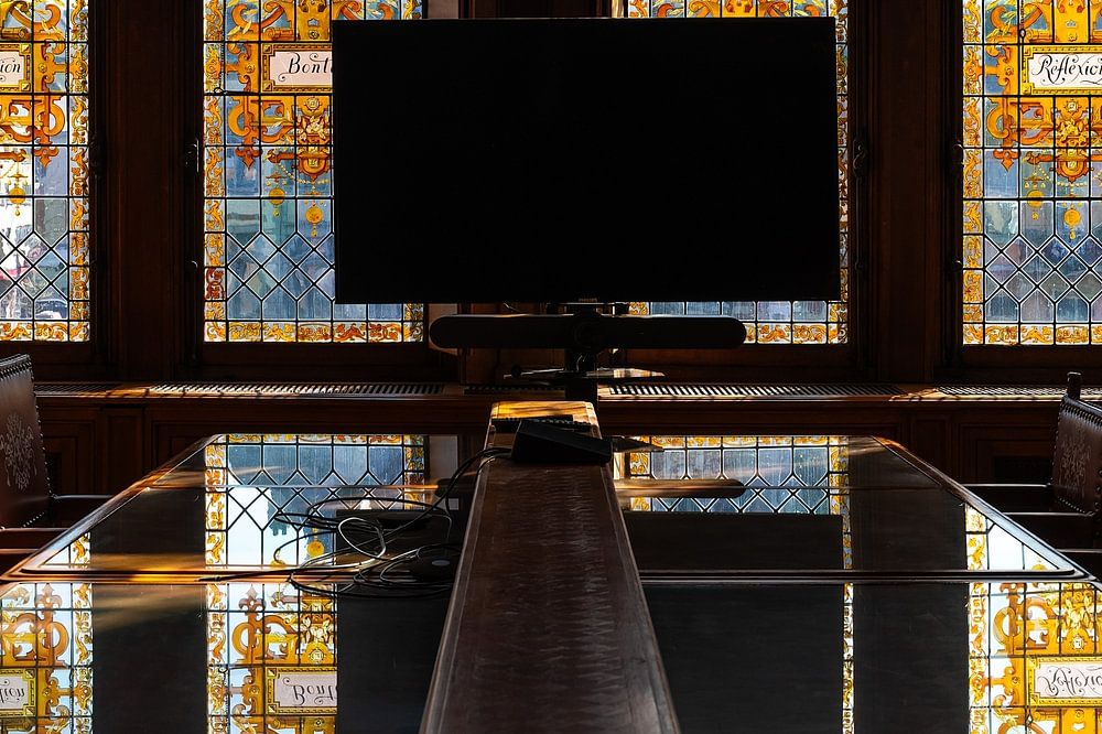 Un beau travail d'artisanat avec ce vitrail coloré. Le reflet est une invention du photographe.