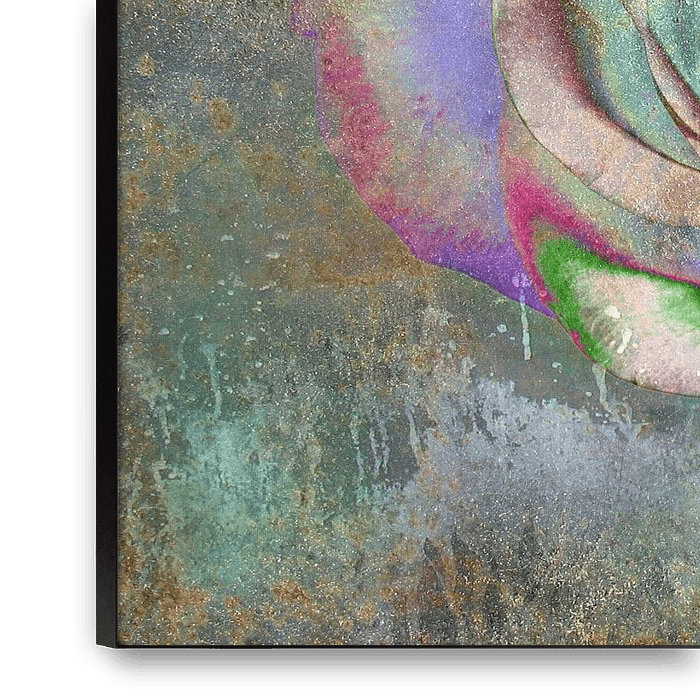 Photographie d'une rose traitée numériquement avec de la texture. Les tons marron et turquoise dominent l'image. La texture semble antique et rouillée, ce qui donne à l'image une expression nostalgique... nostalgie, vintage, texture, structure
