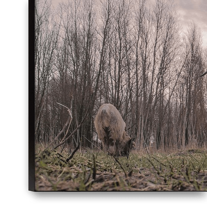 Achetez cette œuvre d'art de paysage Des chèvres dans le quartier de Groningen : Un moment d'ambiance lors d'une balade à vélo par Elianne van Turennout sur toile, aluminium, ArtFrame ou photographie (encadrée), impression d'art en haute qualité et tout format.