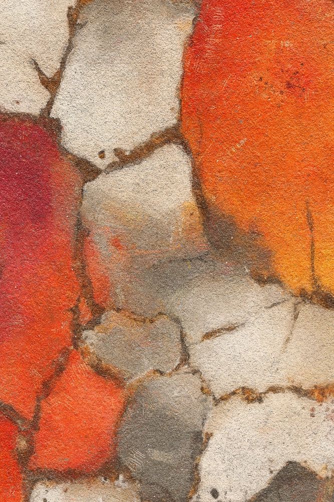Cette œuvre capture la beauté de l'imperfection. Des tons chauds d'orange, de rouge et d'ocre se mêlent à des fissures grises et beiges qui forment un motif naturel. Le contraste entre les zones de couleurs douces et les lignes nettes des fissures crée un équilibre passionnant. Les couleurs respirent l'automne, tandis que la texture évoque un sentiment de profondeur et de superposition. Une œuvre abstraite qui apporte calme et caractère à tout intérieur.