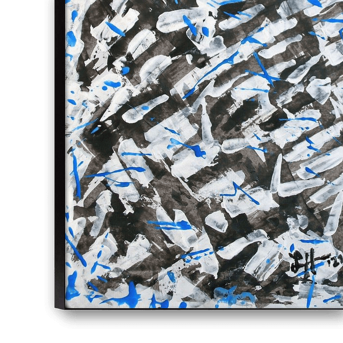 Achetez cette œuvre d'art abstraite Des éclats de couleur bleue entre un enchevêtrement de formes en noir et blanc. par elha-Art sur toile, aluminium, ArtFrame ou photographie (encadrée), impression d'art en haute qualité et tout format.