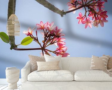 Achetez cette œuvre d'art florale Des fleurs roses de frangipanier dans un ciel bleu par Esther esbes - kleurrijke reisfotografie sur toile, aluminium, ArtFrame ou photographie (encadrée), impression d'art en haute qualité et tout format.