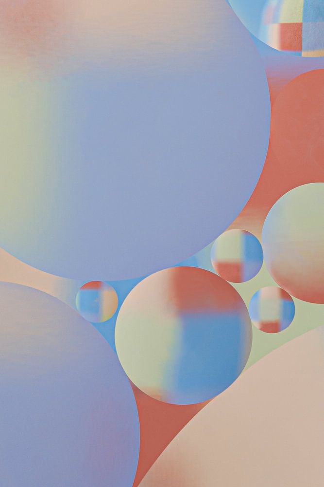 Cette photo de gouttes d'huile sur l'eau a été manipulée pour en faire une représentation presque graphique.