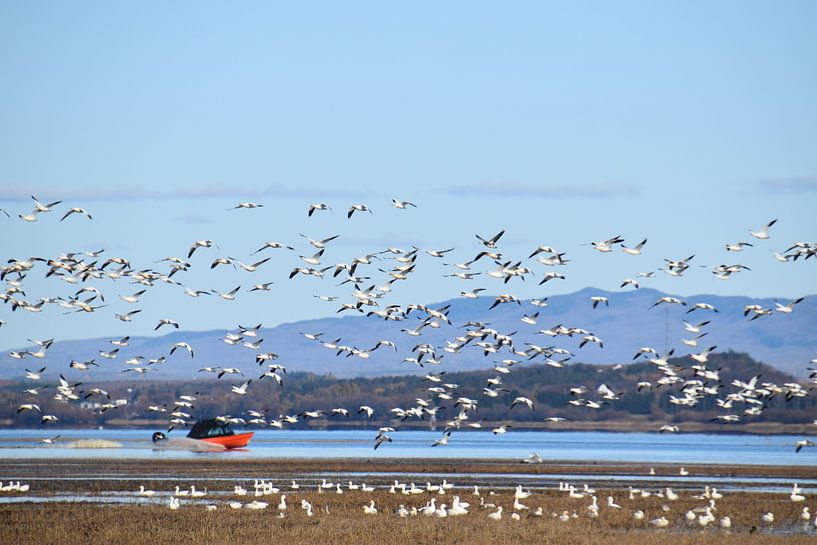 Achetez cette photo Des oies des neiges sur le fleuve par Claude Laprise sur toile, aluminium, ArtFrame ou photographie (encadrée), impression d'art en haute qualité et tout format.