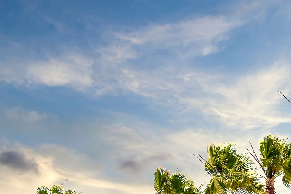Vue idyllique sur les palmiers devant un beau ciel nocturne. Impression de Californie.