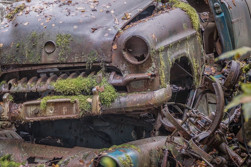 Des traces de rouille dans la forêt - Un cimetière de voitures en Suède