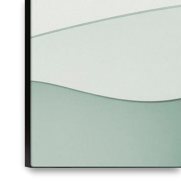 Des lignes douces et courbes dansent harmonieusement sur un fond délicat qui rappelle les brumes matinales. Dans des tons verts doux et des nuances claires, une atmosphère apaisante se déploie, invitant à la rêverie. Cette interaction fluide de formes agit comme une étreinte visuelle qui transporte le spectateur dans un monde de calme…