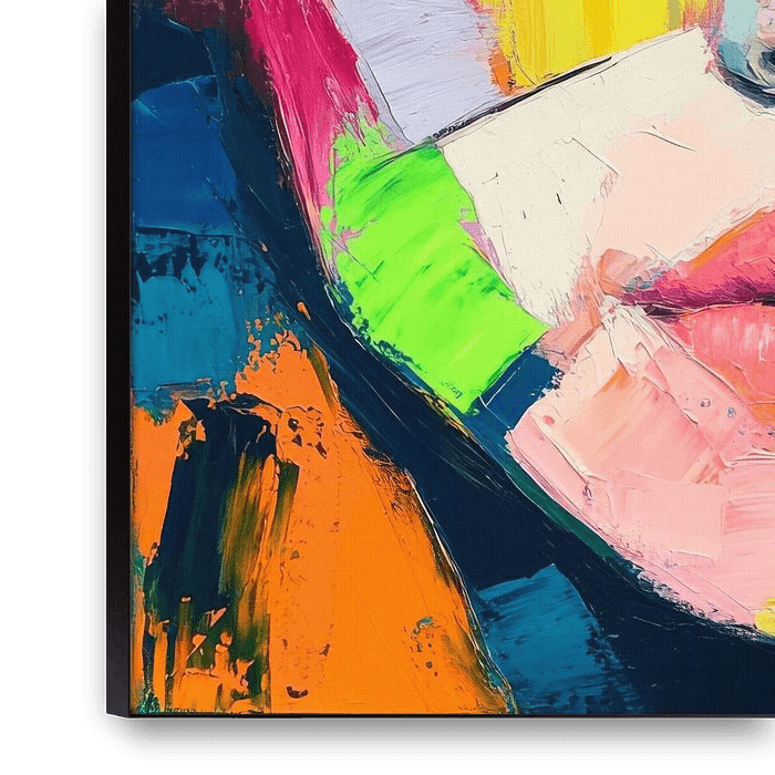 L'image montre un portrait puissant avec des surfaces de couleurs vives qui dominent le visage d'une femme. Ce qui frappe, ce sont les tons bleus et orange intenses qui s'harmonisent par contraste avec de douces nuances de pastel. La conception expressive et les yeux marqués confèrent à l'œuvre une profondeur et une énergie captivantes,…