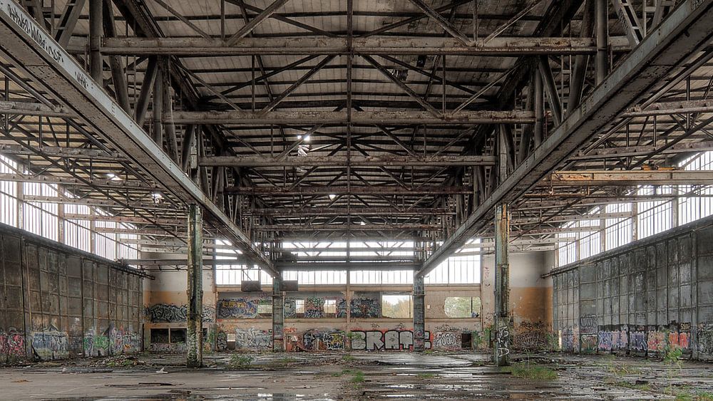 Abandoned aircraft hall somewhere in Germany. This military airport has a rich history, especially from the 2nd World War. Now a desolate area where many people exhaust his dog.