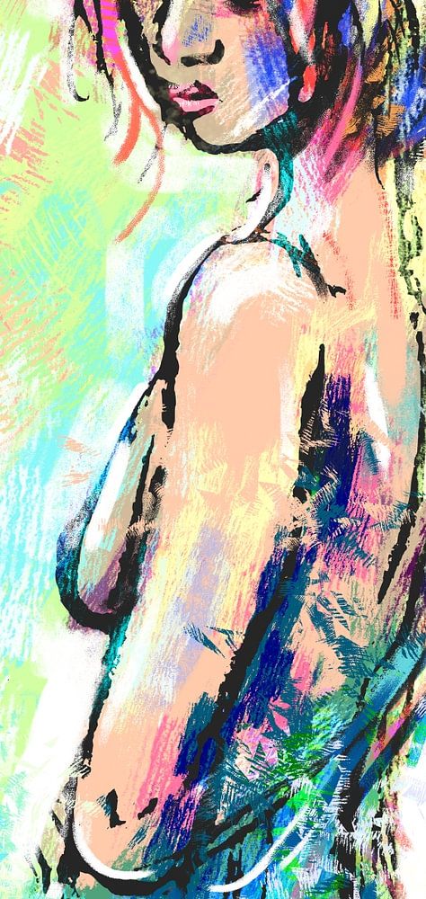 Cette œuvre d'art colorée peut susciter des sentiments doubles. D'une part, l'utilisation de couleurs vives et colorées donne une impression d'été. D'autre part, le regard et l'émotion de la femme sont tristes.