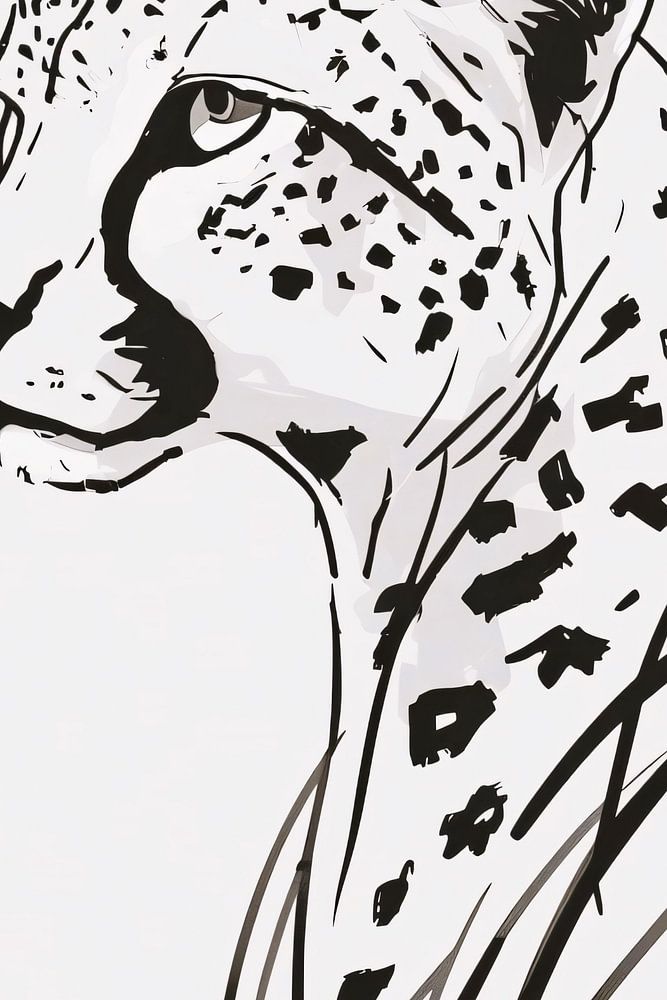 Ce dessin moderne et épuré d'un guépard est l'œuvre d'art parfaite pour les amateurs de minimalisme. Avec seulement quelques lignes noires sur un fond blanc, il donne vie à l'essence de l'animal rapide, sans détails inutiles. Ce dessin s'intègre parfaitement dans n'importe quel intérieur, qu'il s'agisse d'un salon élégant ou d'un bureau professionnel. Il crée une présence à la fois apaisante et puissante. Le contraste entre le noir et le blanc capte et retient l'attention, laissant une impression subtile mais indéniable. Cette œuvre d'art est synonyme de rapidité et d'élégance, tout en dégageant le calme du minimalisme.
