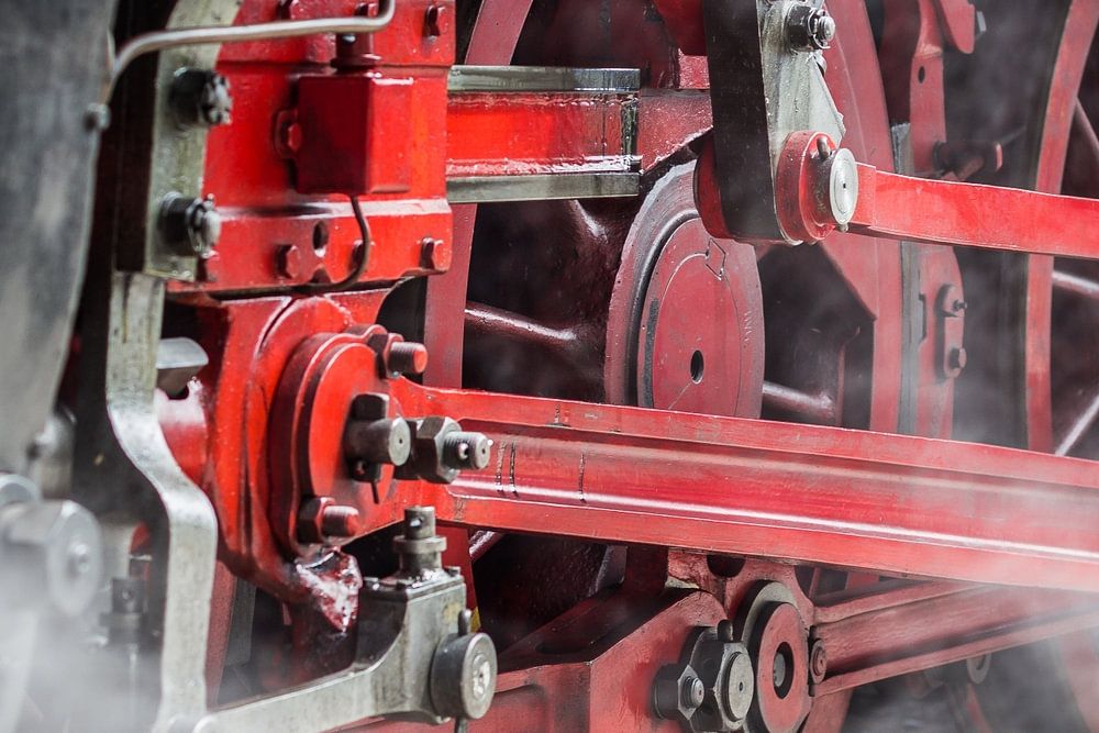 Une photo des roues du train à vapeur qui circule autour du site sidérurgique de Tata.
