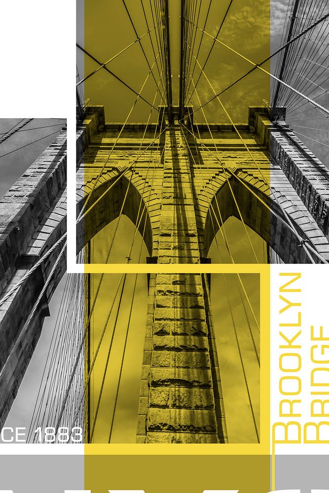 Acheter ce collage Détails de l'affiche Art NYC Brooklyn Bridge par Melanie Viola sur toile, aluminium, ArtFrame ou photographie (encadrée), impression d'art en haute qualité et tout format.