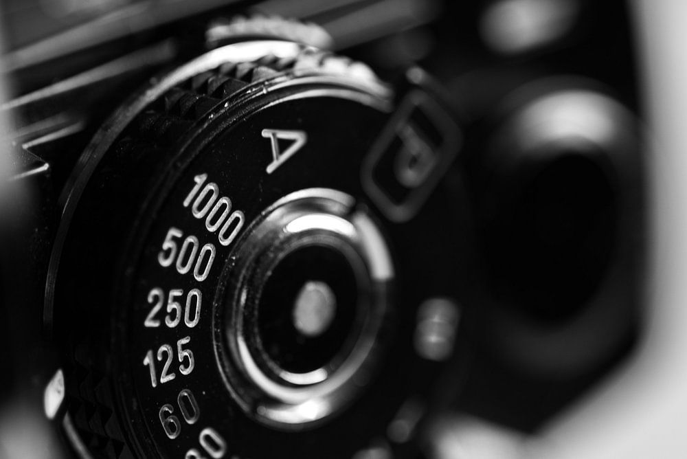 Gros plan sur le cadran de la vitesse d'obturation d'un appareil photo classique.