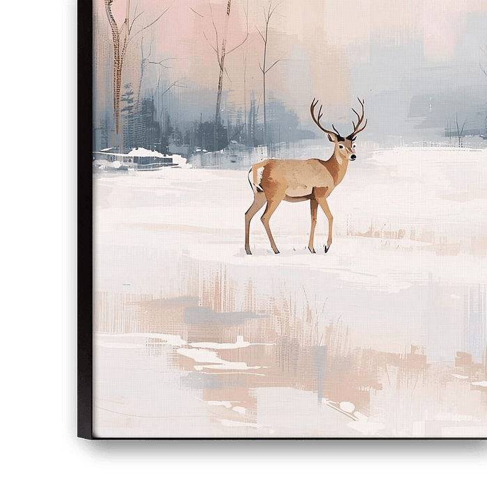 Paysage d'hiver calme et doux avec deux chevreuils, au pastel, acrylique, ambiance hivernale