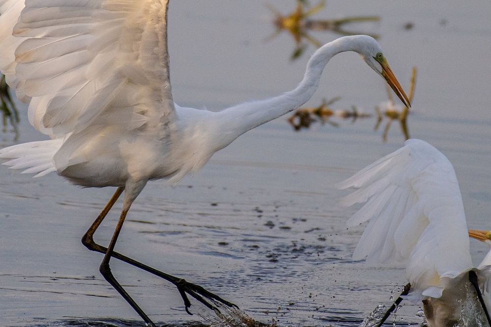 A propos de "Deux hérons blancs combattants dans la belle lumière du soir."