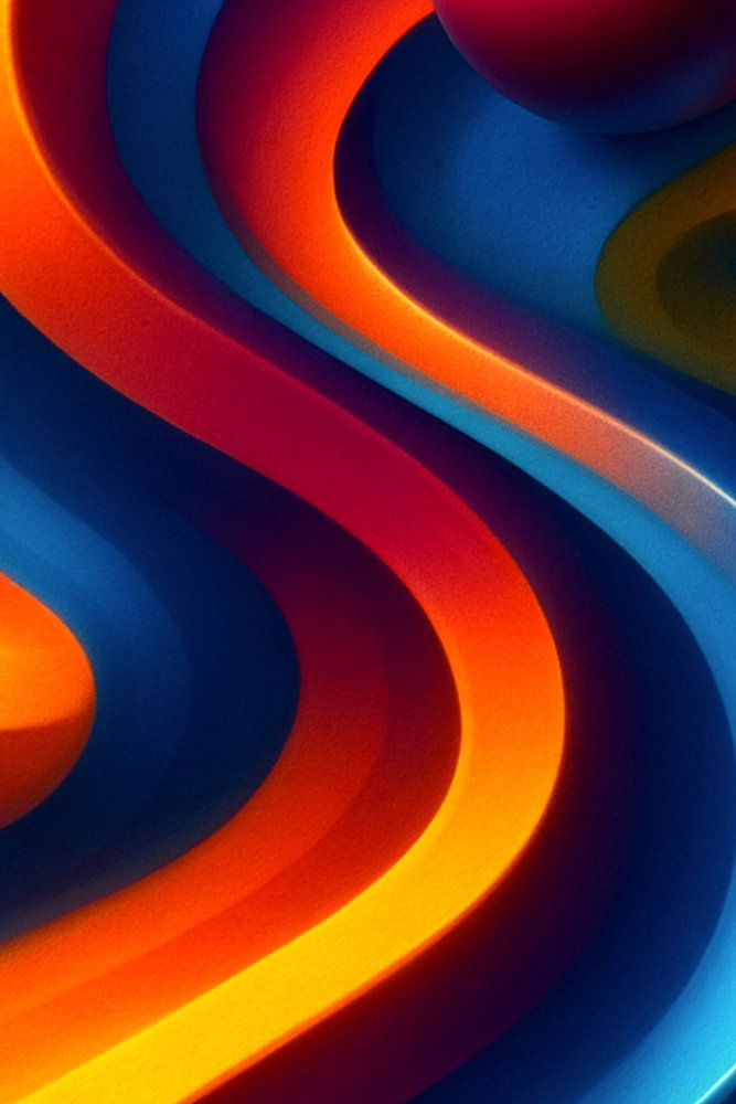 Ce poster numérique impressionnant est un hommage visuel à l'équilibre parfait entre forme et couleur. Dans une interaction hypnotique de lignes fluides et de géométries plastiques, la sphère, le cube, la pyramide et le cône s'unissent en une composition vivante - intégrée dans des bandes de couleurs dynamiques de jaune lumineux, d'orange puissant, de bleu froid et de magenta saturé. La représentation tridimensionnelle donne une impression de profondeur, de mouvement et de structure et transforme chaque mur en une scène de design moderne.