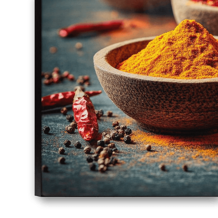 Un arôme passionnant d'épices se déploie dans des tons de terre doux. Le jaune vif du curcuma et le rouge ardent des flocons de piment attirent tous les regards. Cette composition harmonieuse met de la vie dans chaque cuisine et inspire l'essai de nouvelles recettes. Une touche d'exotisme qui fait de la cuisine un événement !
