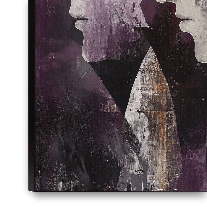 Une œuvre d'art intrigante qui allie émotion et mystère. Les doubles portraits dans des tons subtils de violet et de gris dégagent un attrait à la fois moderne et intemporel. Le jeu des contrastes et des textures fait de ce tableau une attraction dans n'importe quelle pièce. Idéal pour les amateurs d'art abstrait et d'esthétique…