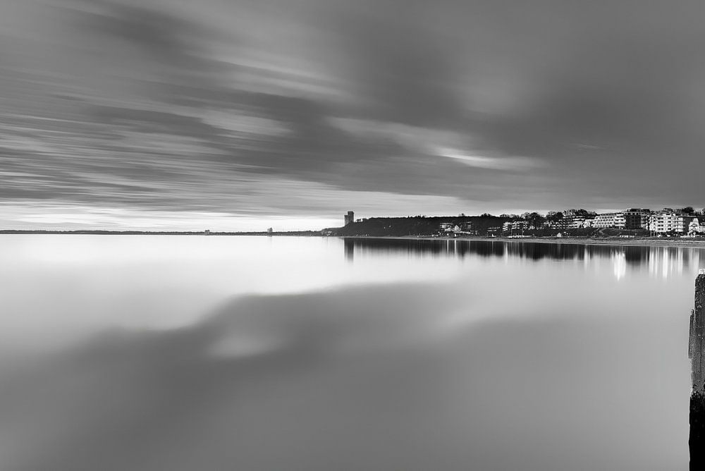Achetez cette photo Doux lever de soleil sur la mer Baltique à Scharbeutz. par Manfred Voss, Photographie Noir et Blanc sur toile, aluminium, ArtFrame ou photographie (encadrée), impression d'art en haute qualité et tout format.