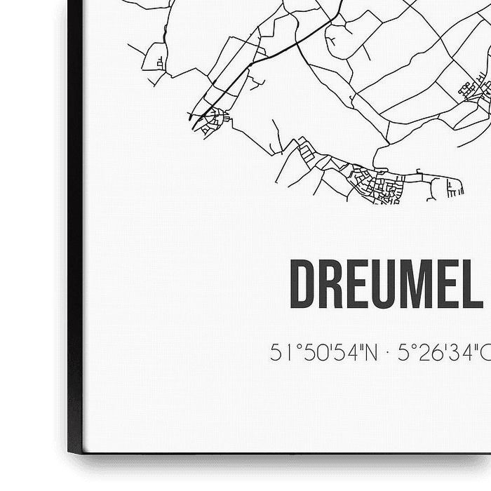 Achetez cette œuvre d'art abstraite Dreumel (Gueldre) | Carte | Noir et blanc par Affiches de lieux sur toile, aluminium, ArtFrame ou photographie (encadrée), impression d'art en haute qualité et tout format.