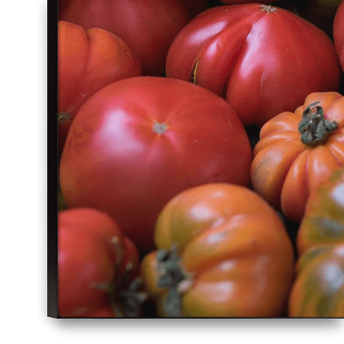 Des tomates fraîches et juteuses sur le marché, ce tableau de tomates est un motif stylé pour la décoration murale.