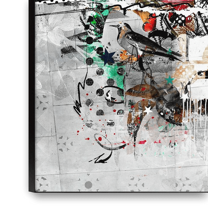 Du subconscient, j'ai joué avec différents éléments et j'ai laissé les compositions naître couche par couche. Tout se rassemble dans un collage où j'ai le contrôle total de la taille, de la composition et de la couleur. Dans les œuvres originales, cela est suivi par le traitement physique, qui est réalisé avec divers matériaux. La base…