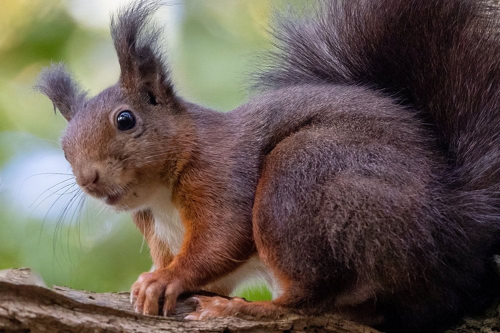 Écureuil sur une branche dans la forêt. Cette photo a été prise dans la forêt de Zandhove à Zwolle.