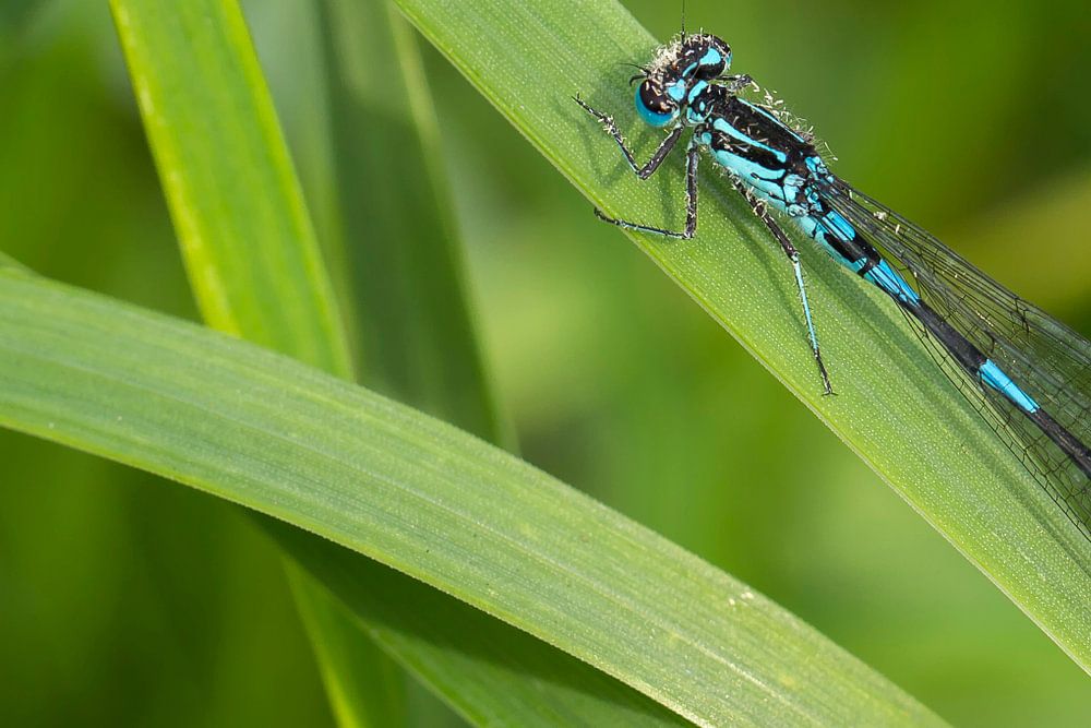 Een macro van een waterjuffer/libelle die even uitrust in het groen par noeky1980 photography