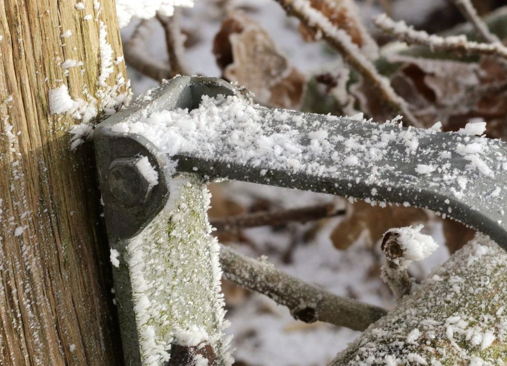 Het paaltje in het bos met een boomstam aan de ketting, zo kunnen geen auto's of paardenkoetsen het bos in.